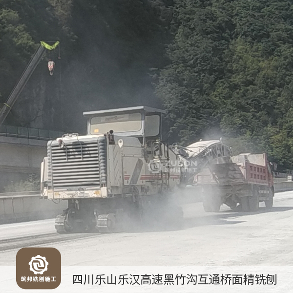 2022年8月 四川樂山樂漢高速黑竹溝互通橋面精銑刨 。