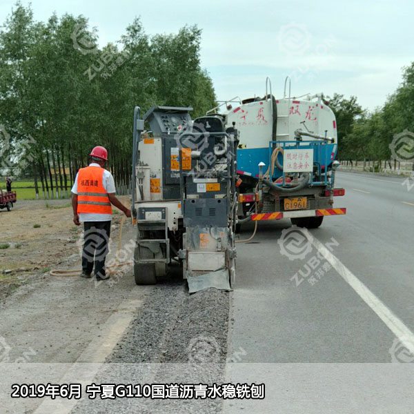 2019年6月G110線大武口至暖泉段改擴建工程開工建設,筑邦建機維特根W50H有幸成為建設隊伍中一員,瀝青銑刨12公分,水穩6公分。