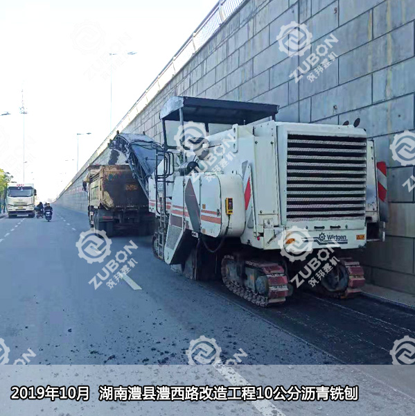 2019年10,湖南澧縣澧西路改造工程開始,瀝青銑刨10公分。此次路面銑刨用到的是德國進口維特根銑刨機中的大家伙--W2100。