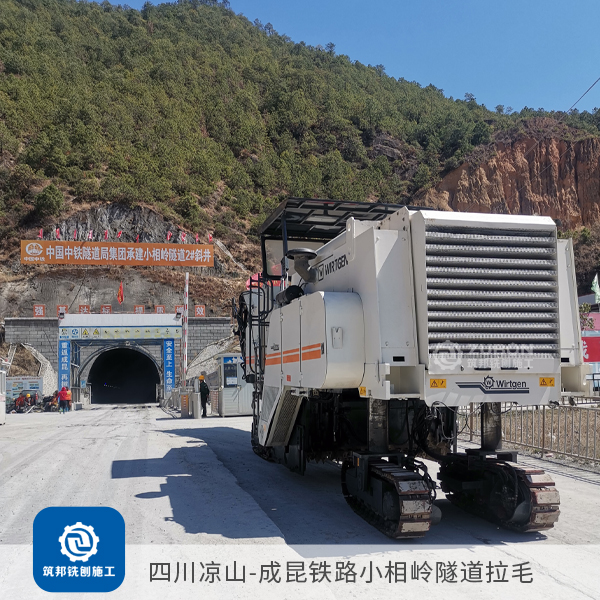 對于隧道長度超過6KM以上的無渣軌道,隧道仰拱面和找平層,因為標高控制不嚴或者施工過程中的二次污染及破壞,澆筑混凝土前對原仰拱及填充面進行清理鑿毛,鑿除已澆筑混凝土表面的水泥砂漿和松散層,然后用用高壓水仰拱填充頂面沖洗干凈,去除泥滅、積水等雜質,使其標高達到設計要求,就需要用大型銑刨機進行連續銑刨作業,無論從銑刨深度還是銑刨效率及平整度而言,筑邦溫馨提示大型銑刨機比小型手推式銑刨機有明顯優勢。采用德國進口