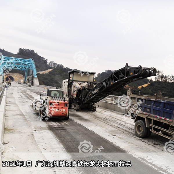 2021年1月12日廣東深圳贛深高鐵長龍大橋橋面拉毛。深圳銑刨機租賃
