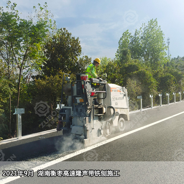 銑刨式隆聲帶一般設在行車道旁的路肩上,由一系列凹凸圓弧狀機構形成,當汽車駛過隆聲帶時,輪胎產生噪聲并且引起汽車的振動,用聲音和震動來警告那些駛離行車道的司機,防止車輛跑偏引起的危險,對不熟路況、大意及疲勞駕駛的司機起到很好的提醒和警示作用,防患于未然,減少交通事故的發生率,為高速公路的安全暢通提供強而有力的保障。