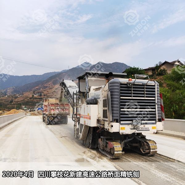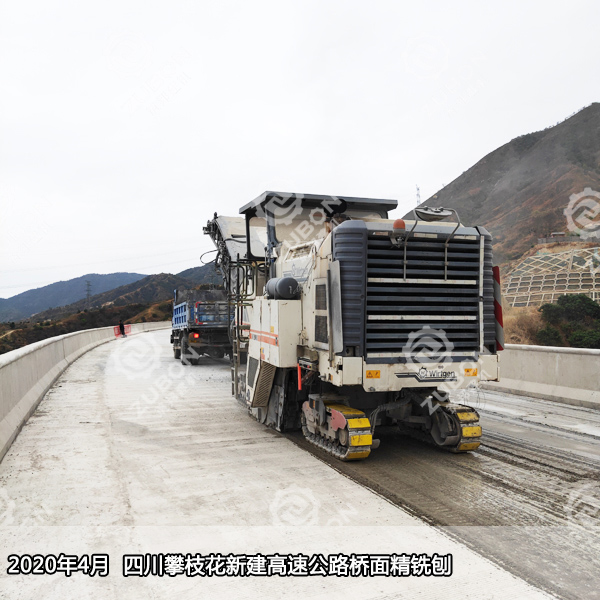 2020年4月四川攀枝花新建高速公路全線橋面精銑刨,此次用到的設備是維特根精銑刨機W2000和山貓清掃機。