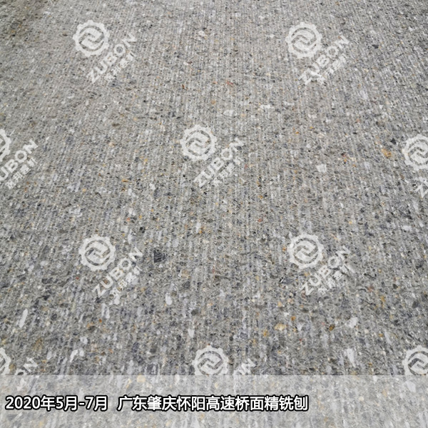 在橋面調平層施工前, 為保證調平層與主梁混凝土間的連接質量,通常需對混凝土表面進行處理,清除表層混凝土浮漿,以增強層間連接面的粗糙度。在梁頂未設置調平層連接筋的情況下,將銑刨機應用于橋面鑿毛,解決了人工拉毛或人工小型鑿毛機鑿毛存在的問題,鑿毛效果好,筑邦經驗豐富的操作手橋面精銑刨一天可以做到10000平方以上,不僅大大的縮短施工工期,更節約了施工成本。
