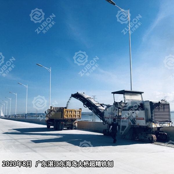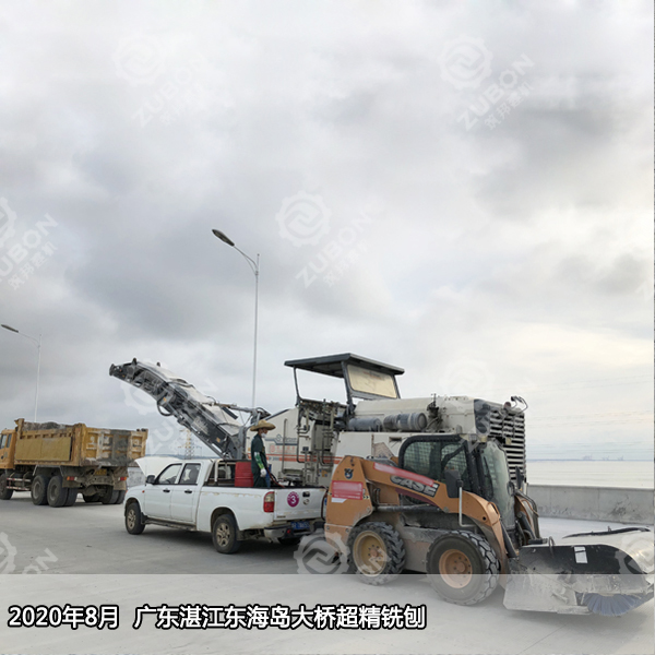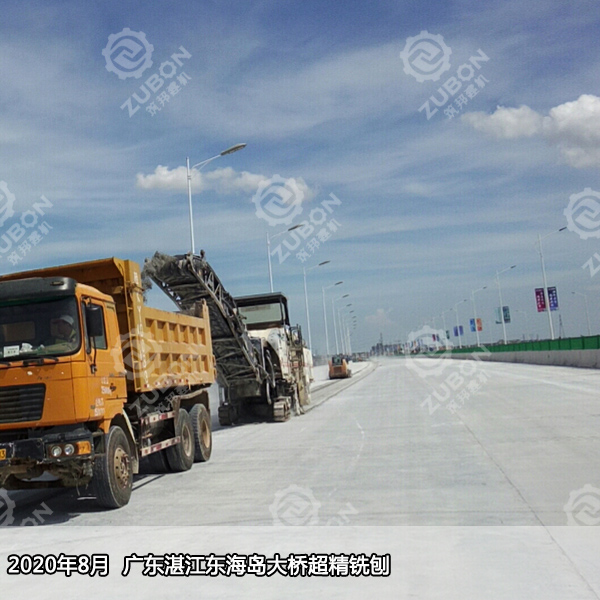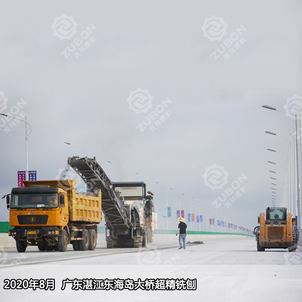 2020年8月廣東湛江東海島大橋超精銑刨,繼6月超精銑刨試驗(yàn)段測(cè)試滿意后,原班人馬再赴東海島大橋完成剩余60000㎡橋面精銑刨作業(yè),維特根精銑刨機(jī)W2000搭配700多把刀頭銑鼓,精銑刨完后直接開(kāi)放交通。