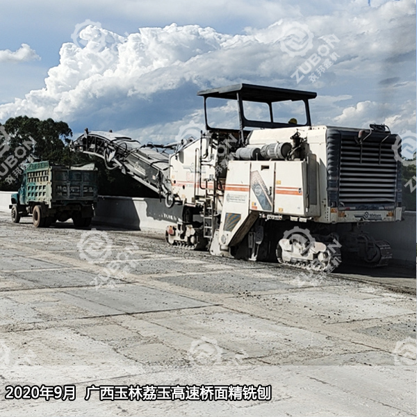 本周工程案例播報:2020年9月廣西玉林荔玉高速橋面精銑刨,精銑刨面積200000㎡,由袁云龍和袁志勇兩人攜維特根精銑刨機W2000出征。